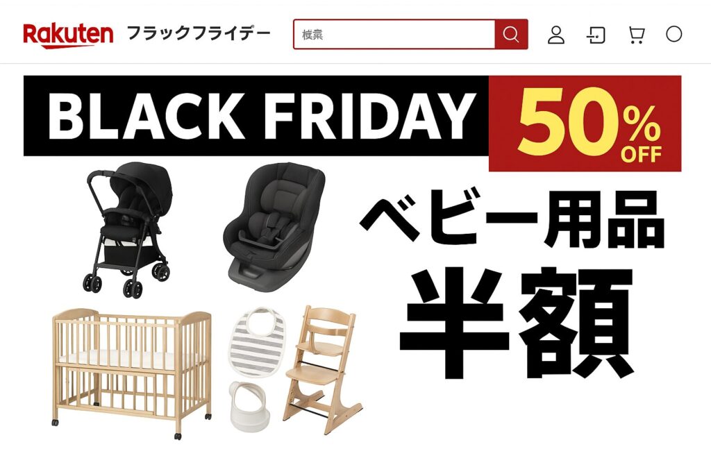 2025年の楽天市場ブラックフライデーでは、ベビー用品が盛りだくさん。